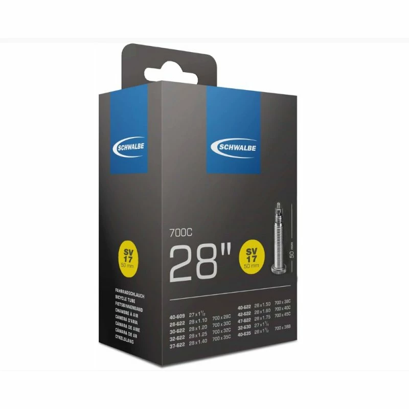 Schwalbe Butyl Schlauch für Touren, Cross und Citybikes mit Aerofelgen, Dieser Schlauch hat ein 50mm Langes SV Ventil